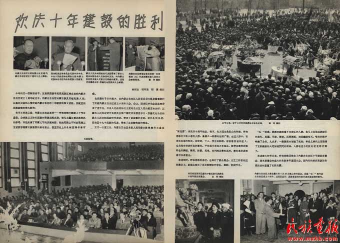 1957年6期《民族画报》为庆祝内蒙古自治区成立10周年刊发了专题报道《欢庆十年建设的胜利》