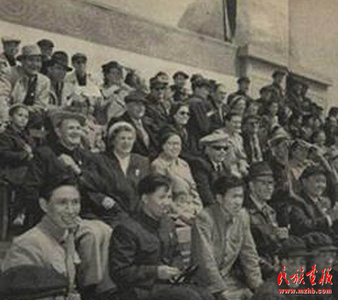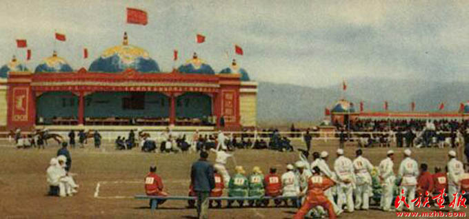 为庆祝內蒙古自治区成立10周年,自治区首府呼和浩特市在5月1日至3日举行了规模空前的 “那达慕”大会,这是蒙古族人民传统的民间文娱体育盛会。 参加大会的有赛马、摔跤、射箭、武术、摩托车表演等600多名运动员。到会的观众在三天內达11万多人次
