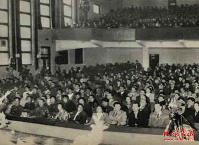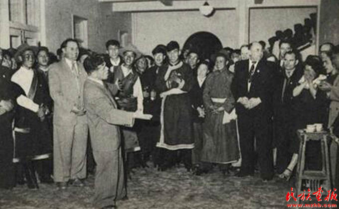 宴会后,苏联专家和各族代表兴高采烈地歌唱